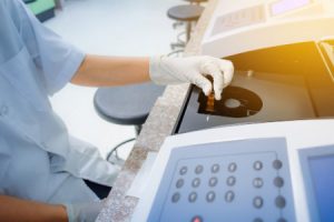 После помещения исследуемого образца в лоток, а затем лотка в спектрофотометр, можно начать измерение. Свет, излучаемый источником, проходит через призму или дифракционную решетку (дисперсионный элемент монохроматора). Соответствующая длина волн, выделенная монохроматором, направляется на лоток, в котором находится образец. Затем, после прохождения через анализируемую жидкость, свет падает на детектор, благодаря которому на экране прибора показывается результат анализа.